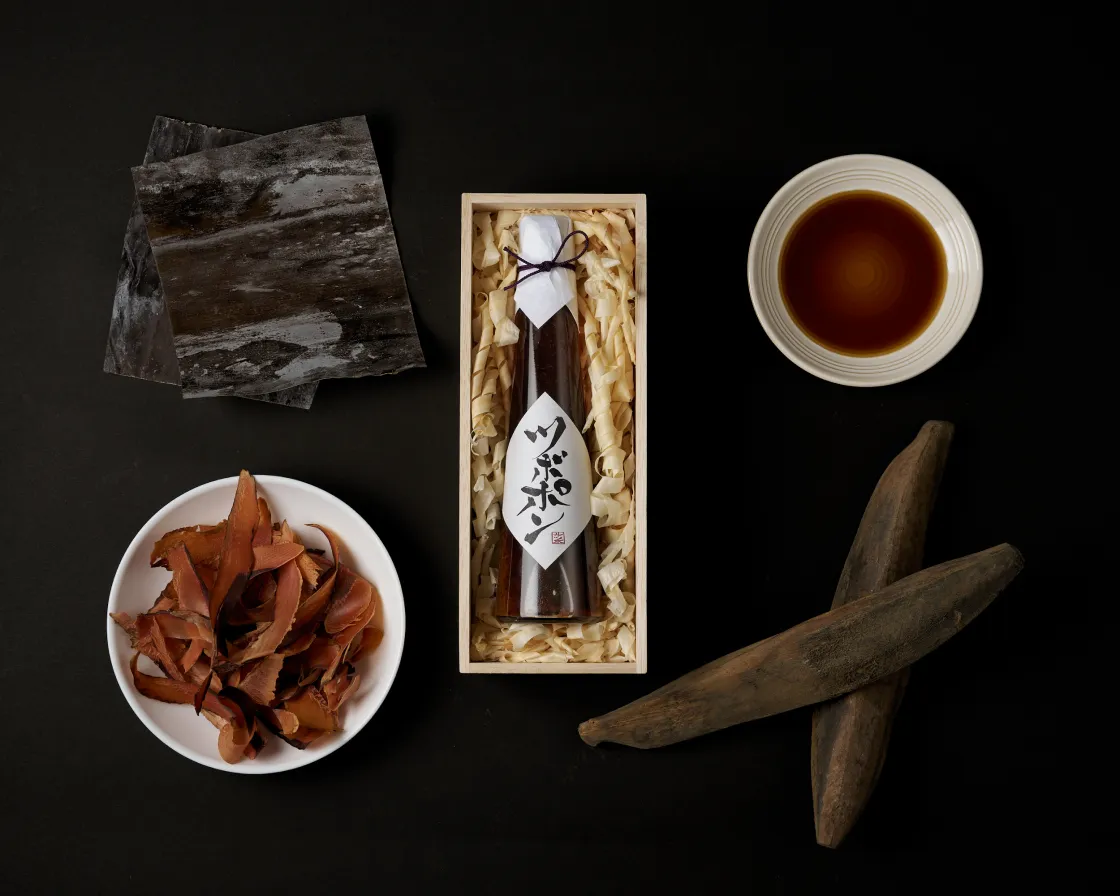 最高級鰹節「本枯節」と北海道産「羅臼昆布」をポン酢の中に入れる事によって、日本伝統の「出汁の旨味」を感じていただけます。